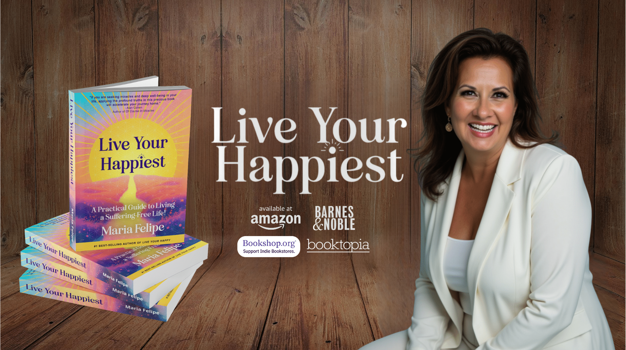 Live Your Happiest is an inspiring, practical, and heart-centered guide that offers readers a clear pathway to lasting joy and freedom from suffering. Based on the timeless wisdom of A Course in Miracles and enriched with insights from Byron Katie’s “The Work,” Maria Felipe’s new book is an invitation to live with purpose, forgiveness, and authentic happiness.